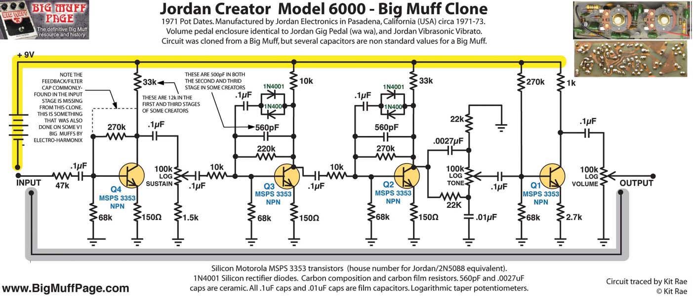 Layouts for several Big Muff variants, and as a cherry on top Jordan Creator Model 6000, which is basically twicked Muff Clone. Sounds very marshall-ish. Could be good start for your kind-off Cornish build. I won't be surprised at all if Cornish SS-3 is extended version of this, REALLY
