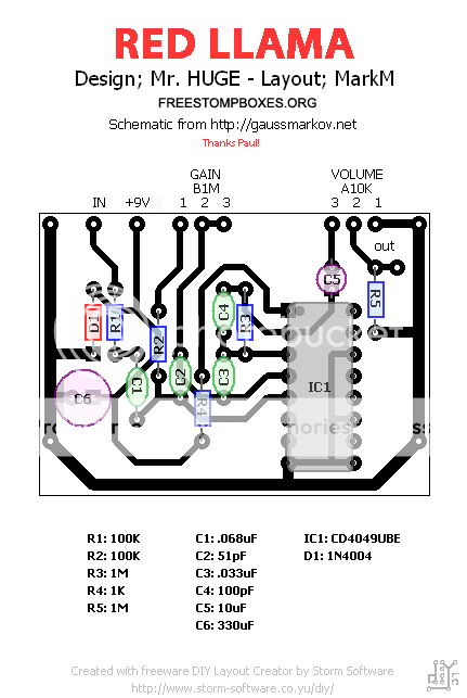 The Red Llama is a clone of Craig Andertons Tube sound fuzz. Jorge did