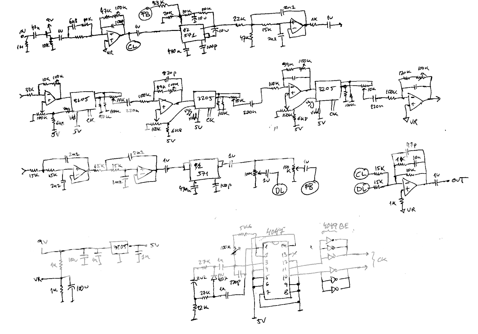 - DOD fx90 / Ibanez AD80 AD100 / Boss DM2 / Aqua puss: >=+9v, 1xMN3005, bjt filters